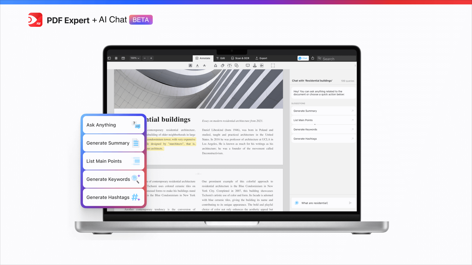 We're excited to bring you some groundbreaking news that's set to redefine how we interact with documents. We have recently introduced our latest addition to the PDF Expert toolkit - AI Chat! This is not just an update; it's a leap forward in document management and efficiency.